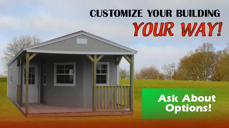 Barns, Lofted Barns, Lofted Barn Cabins, Cottage Sheds, Utility Sheds, Garages, Cabins, and a variety of custom combinations of these basic designs. All buildings may be purchased in treated wood, painted treated, or metal exteriors.